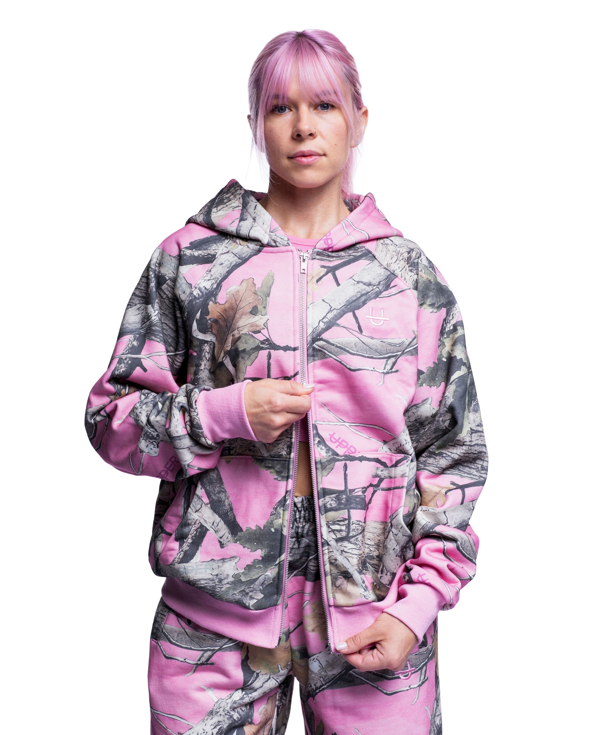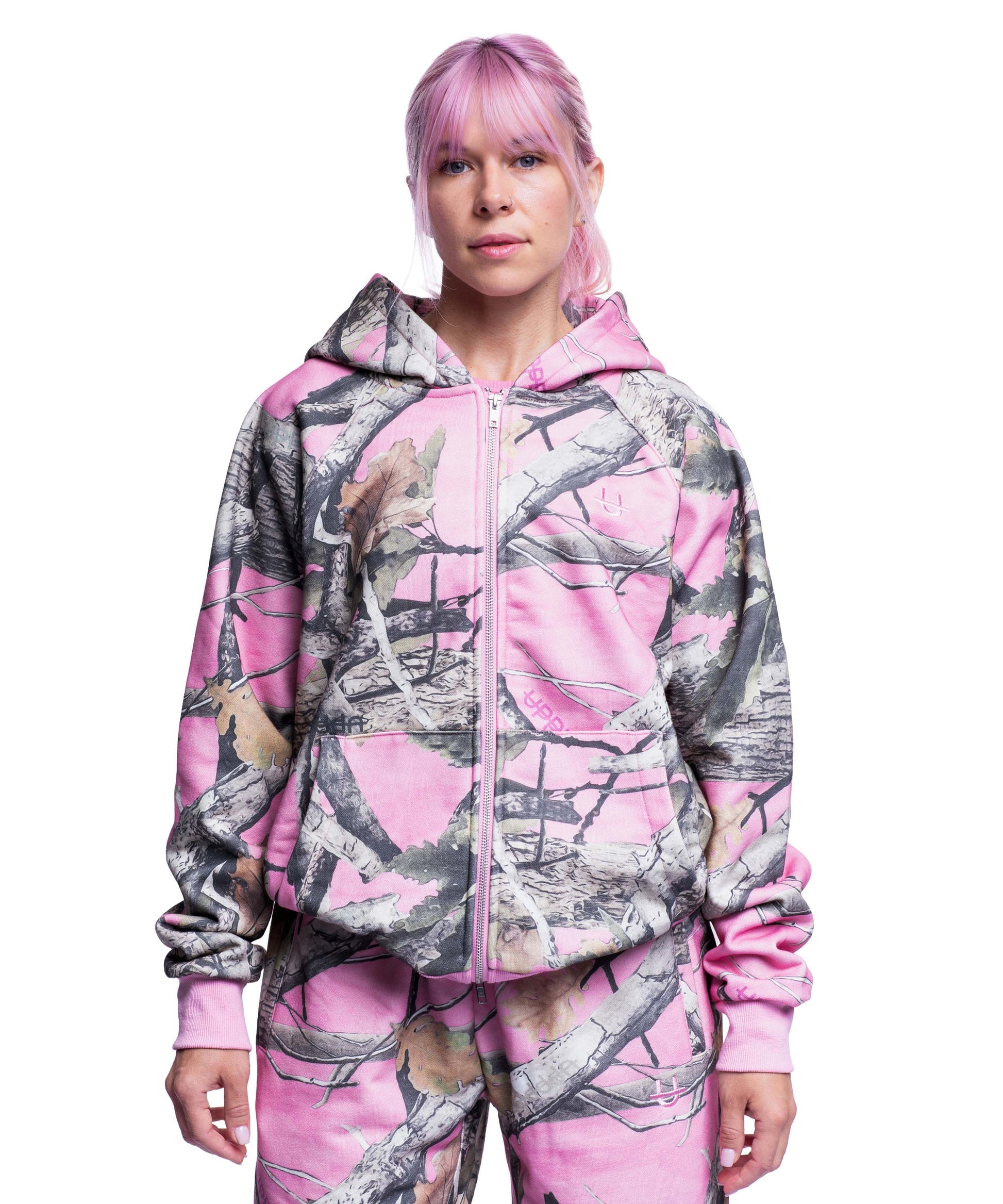 Double Zip Hoodie Pink Camo